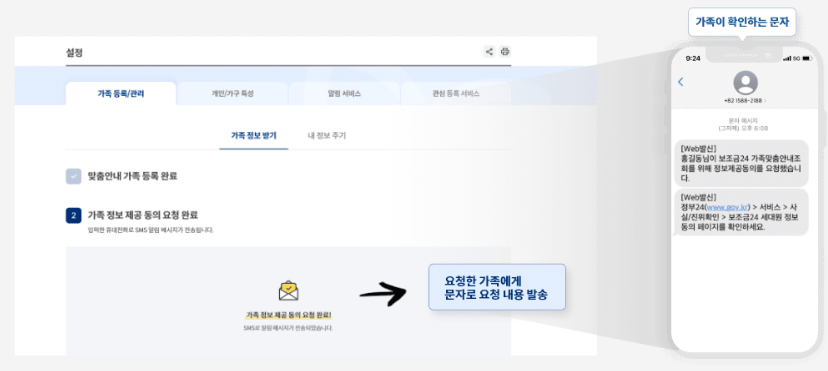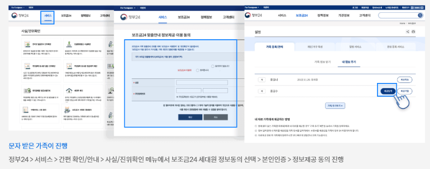2.정보제공 동의 요청 / 가족의 보조금 조회는 정보제공 동의가 필수 입니다.