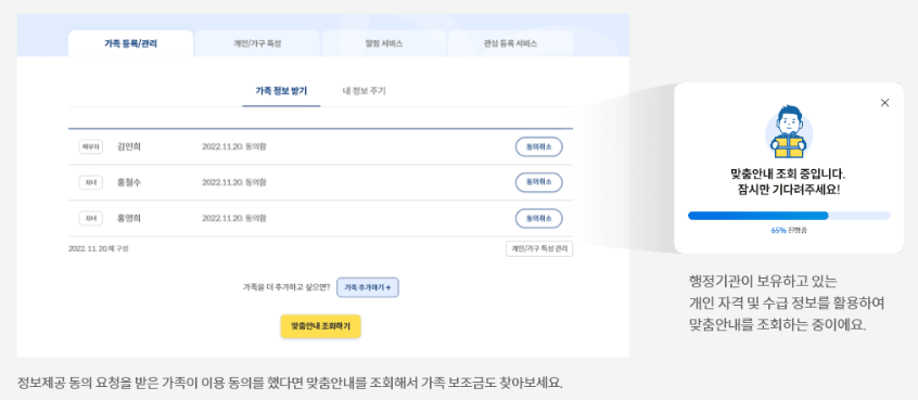 4.맞춤안내 조회 / 동의 절차 완료 후 가족의 맞춤안내 조회가 가능
