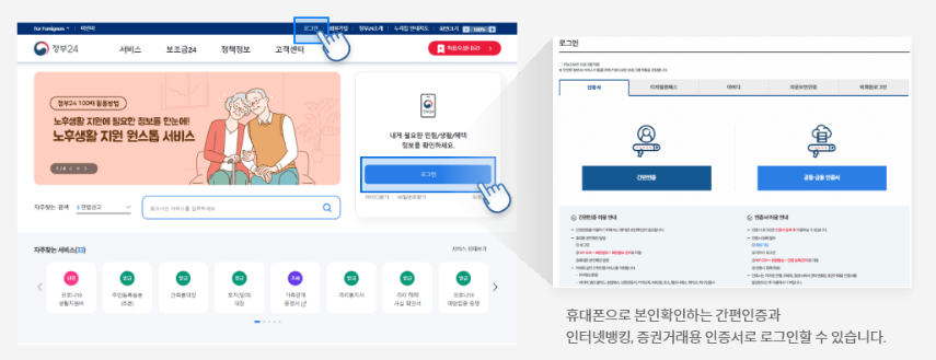 1.로그인 : 정부24 회원 대상 서비스 / 회원가입 필수