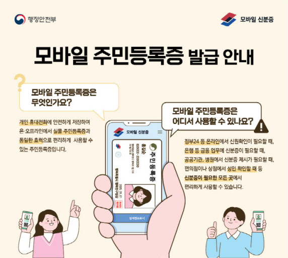 모바일 주민등록증은 행정안전부에서 제공하는 디지털 신분증으로, 기존 플라스틱 주민등록증과 동일한 효력을 가집니다. 스마트폰 앱을 통해 간편하게 본인 인증을 할 수 있으며, 공공기관 및 금융기관에서 신분 확인용으로 사용할 수 있습니다.