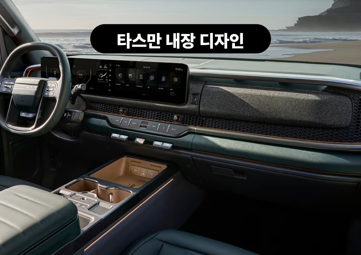 2025 타스만은 단순한 픽업이 아닌, 도심과 오프로드를 넘나드는 프리미엄 라이프스타일 트럭입니다. 캠핑, 레저, 업무용까지 다용도로 활용 가능하며, 첨단 기술과 감성적 디자인이 조화를 이루고 있습니다.