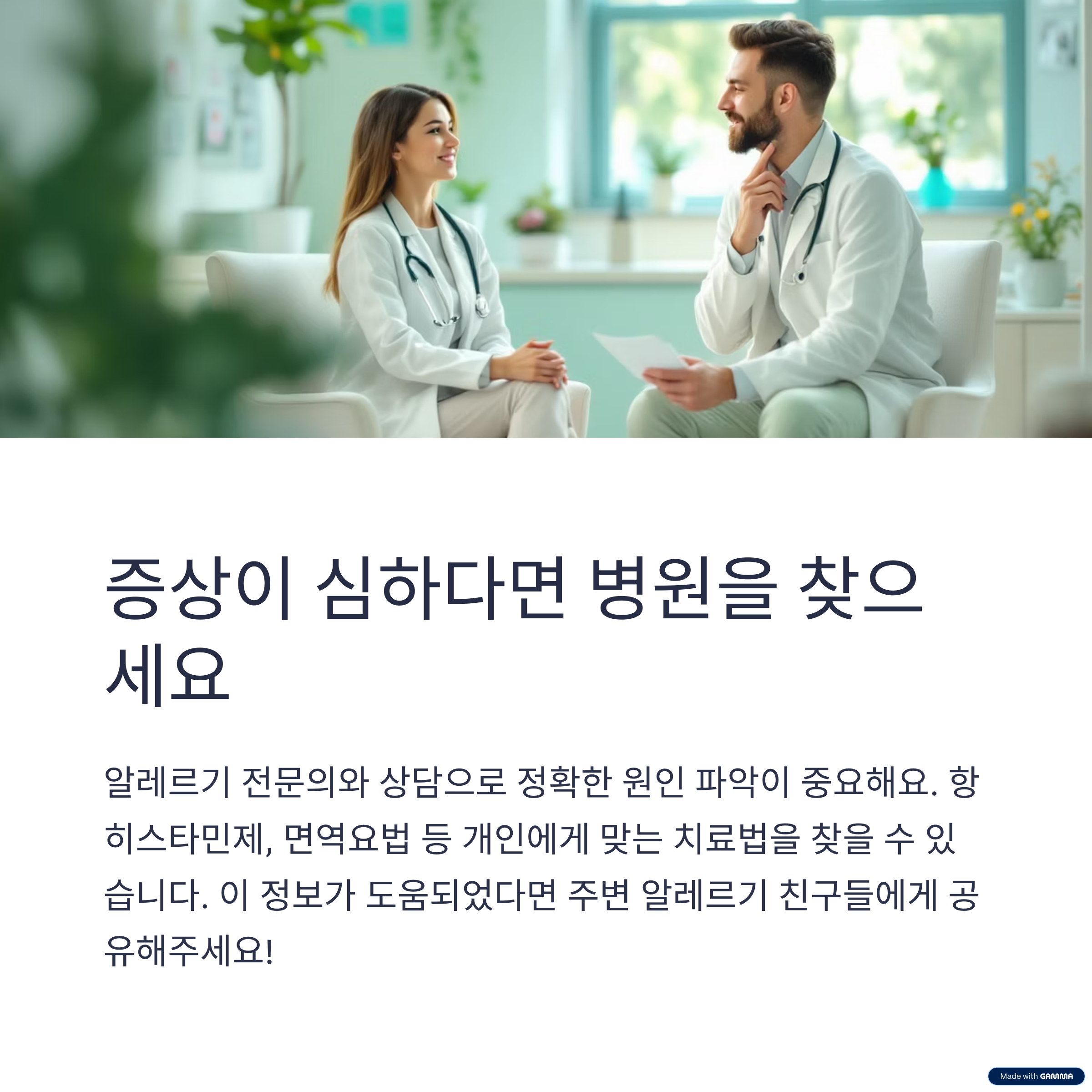 생활 수칙을 지켜도 증상이 계속된다면, 병원에서 알레르기 검사를 받는 것이 중요해요. 꽃가루 외에도 다른 알레르겐이 원인일 수 있거든요.
