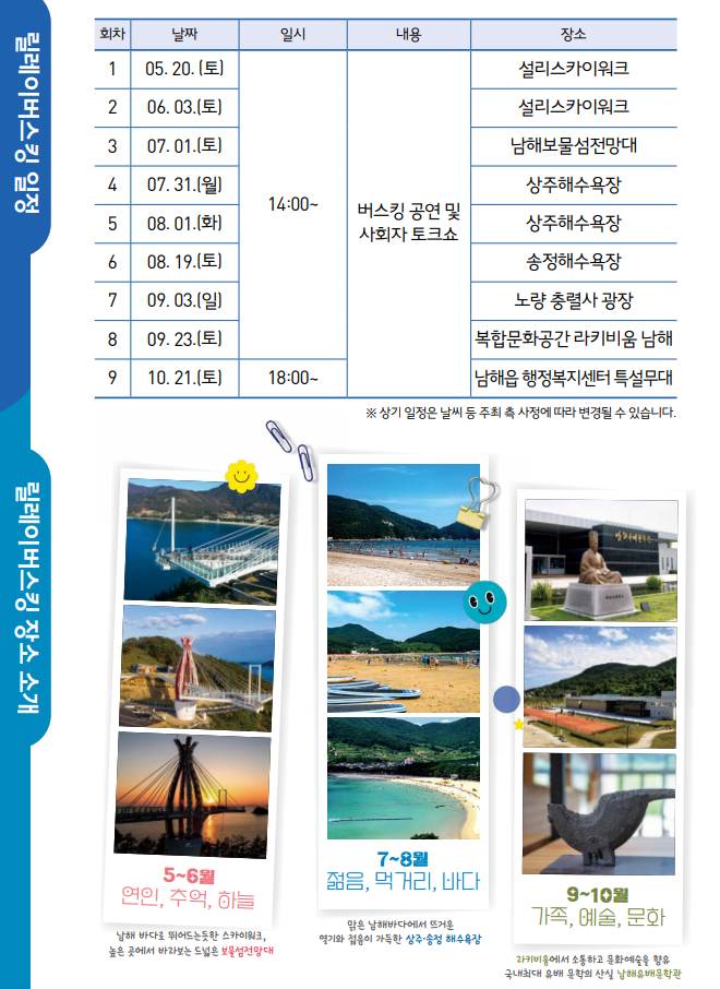 경남 남해군에서 5월부터 10월까지 주요 관광 명소에서 '2023 보물섬 릴레이 버스킹'을 추진한다고 합니다.