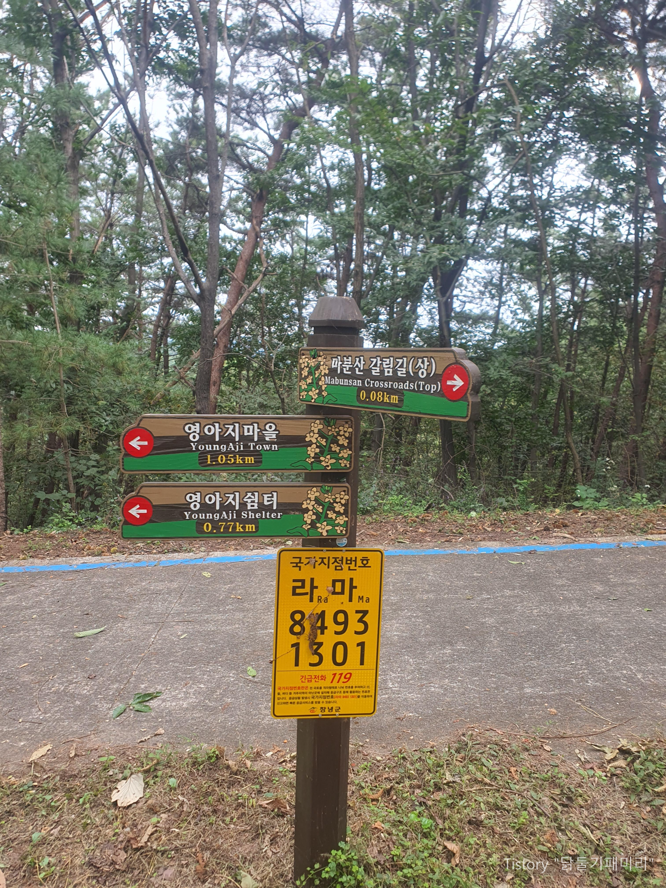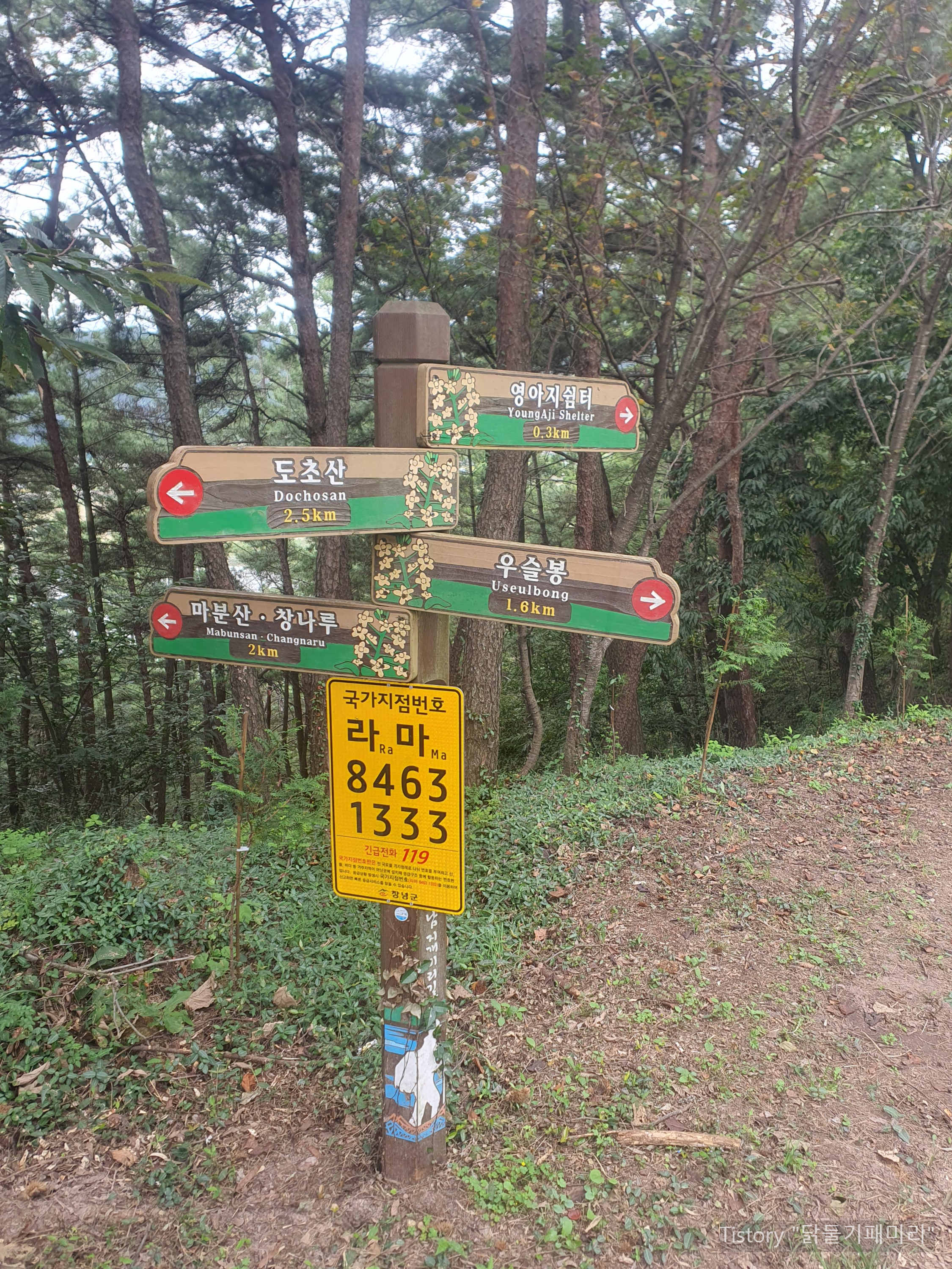 ◆ 코스 : 창나루주차장-창나루전망대-6남매 나무-마분산-목동이 이름새긴 돌-영아지쉼터-영아지주차장-도토리 6형제 길- 죽림쉼터-통천교-금천교-옥관자 바위-창나루주차장