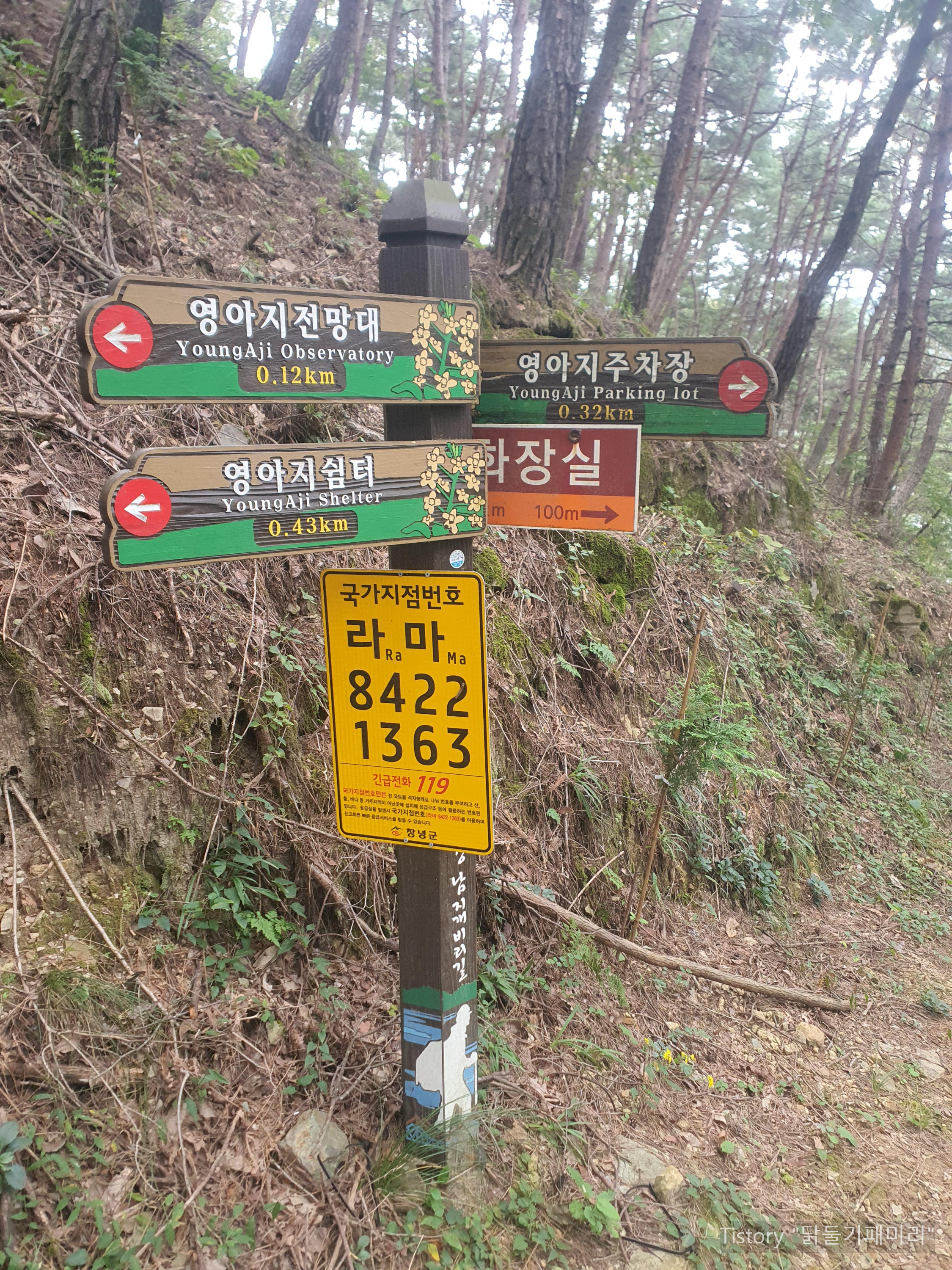 남지개비리길은 순환코스로 되어 있어 직진해서 돌아오는 길과 우측의 산길로 바로 접어드는 길이 있습니다. 화장실은 창나루 부근에 하나 영아지 주차장 쪽에 하나씩 있습니다. 화장실간 거리가 1시간 이상이기에 참고 하시면 좋을 듯합니다.