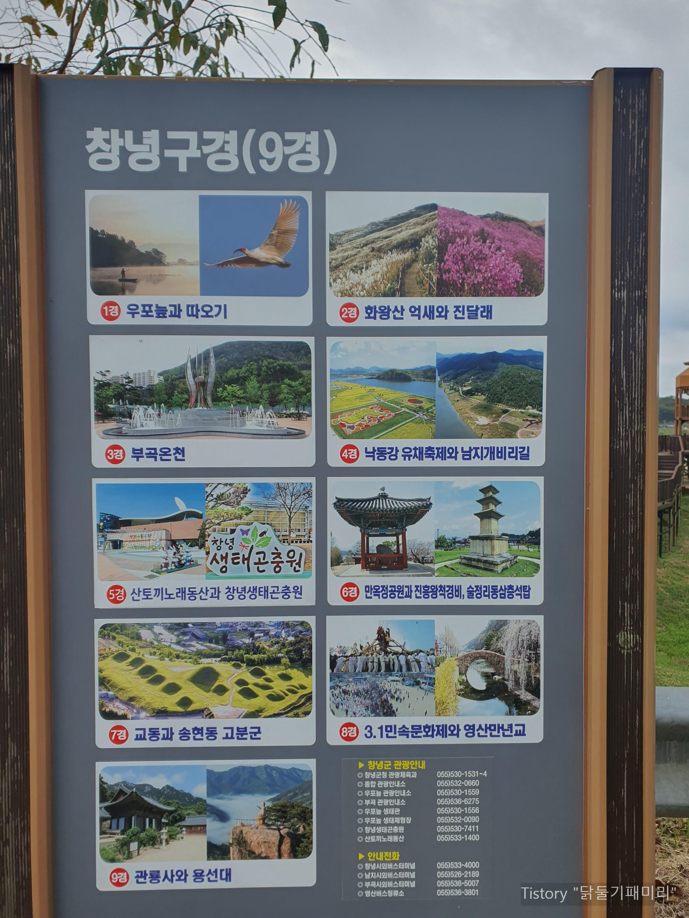 창녕군 관광 안내도와 창녕구경(9경) 표지가 있는 곳에 도착하여