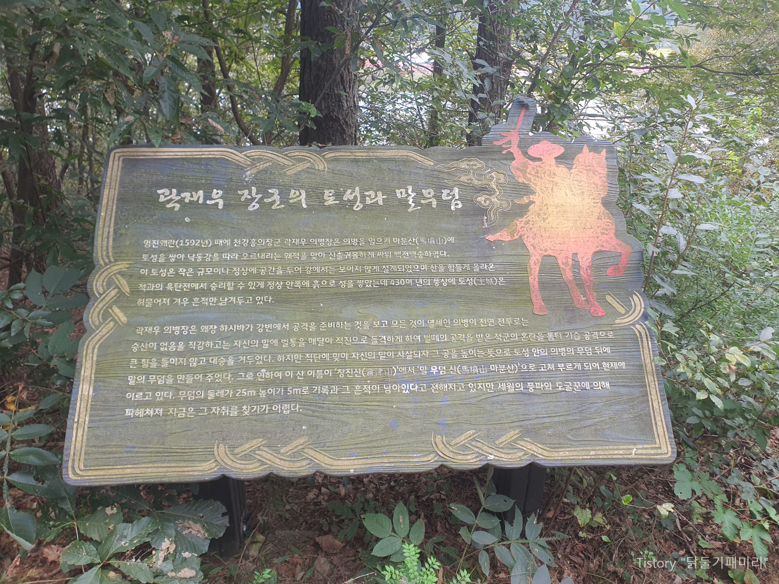 창나루전망대 옆으로 곽재우 장군의 토성과 말무덤의 유래에 대해 설명하는 글이 있습니다.