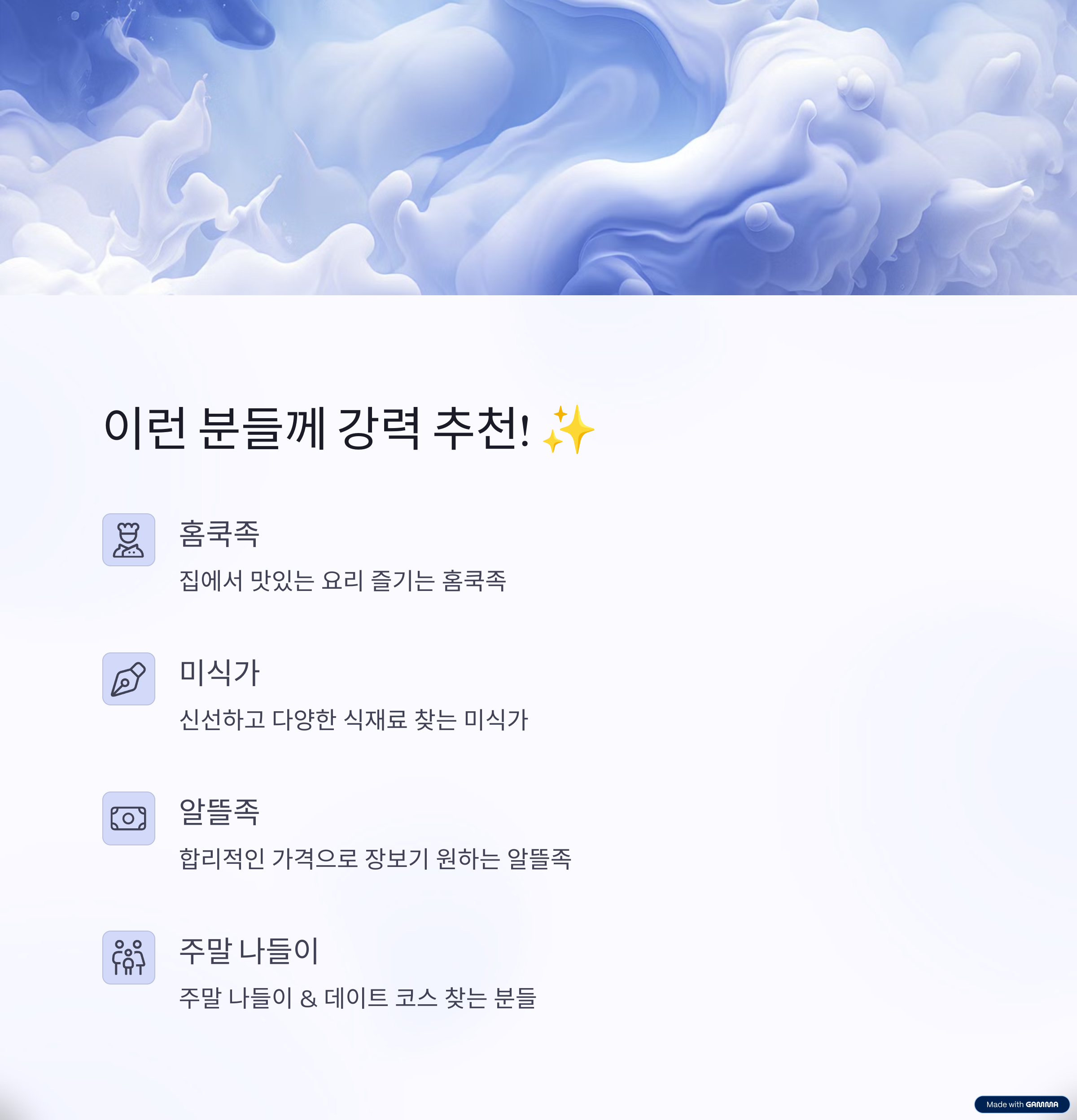 ✔ 주말에 장 보며 외식 같은 기분 내고 싶은 분