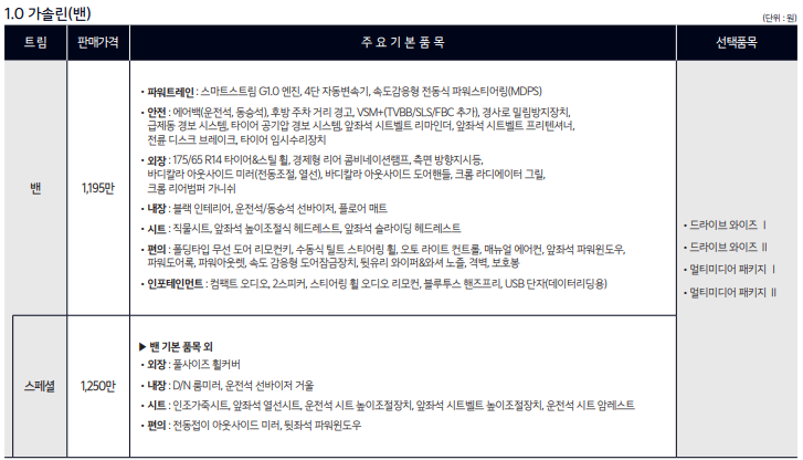 | 1.0가솔린 | 1.0가솔린 밴 | |