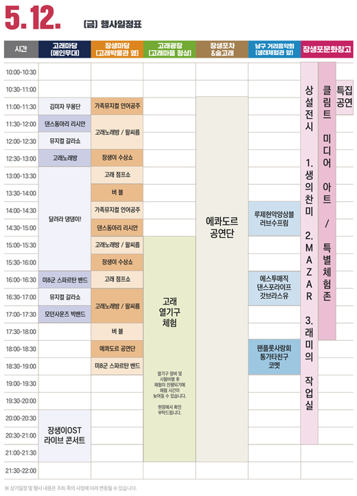 - 장생마당 공연무대 : 23.05.11 ~ 23.05.14