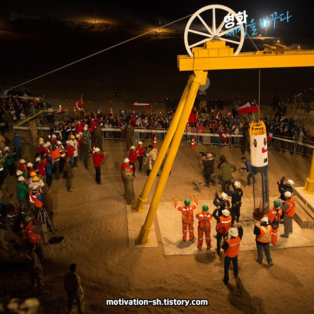 깊이 **700m, 섭씨 32도, 습도 95%**라는 열악한 환경 속에 33명의 광부들이 매몰됩니다.