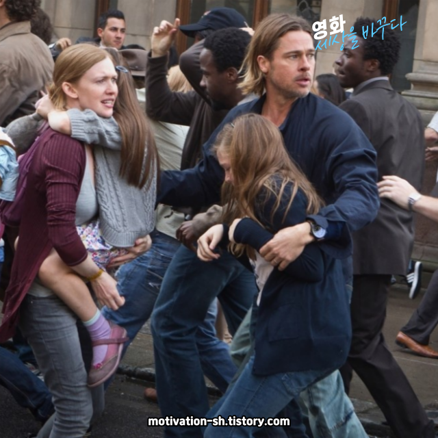 - 좀비 바이러스의 원인을 찾기 위해 세계 각지를 돌며 벌어지는 사건들은 손에 땀을 쥐게 한다.