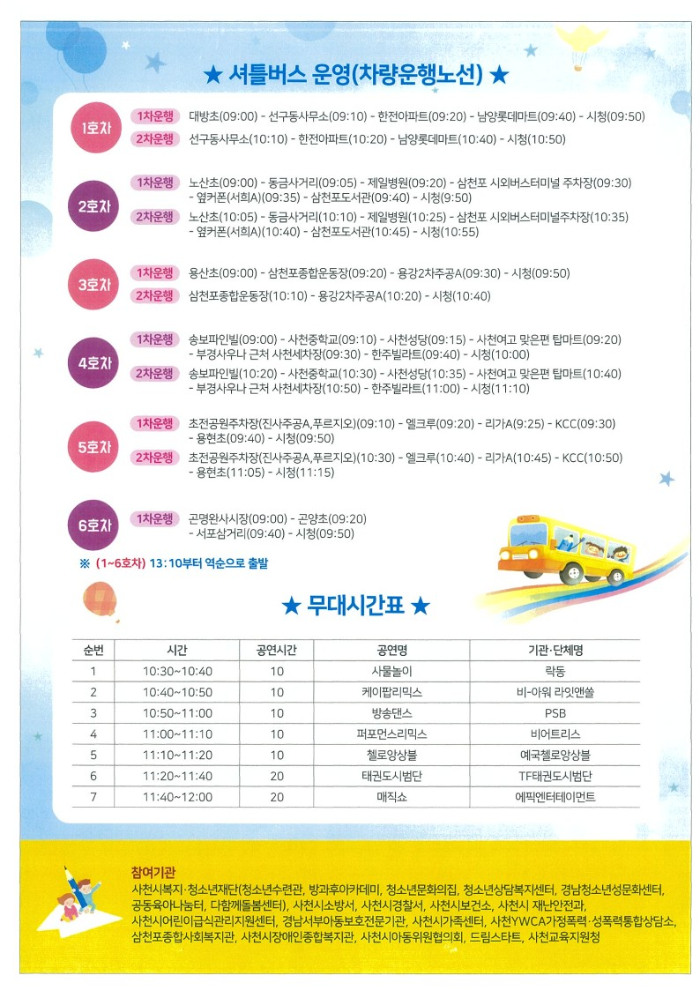 - 주요내용: 체험 및 놀이마당, 공연마당 진행