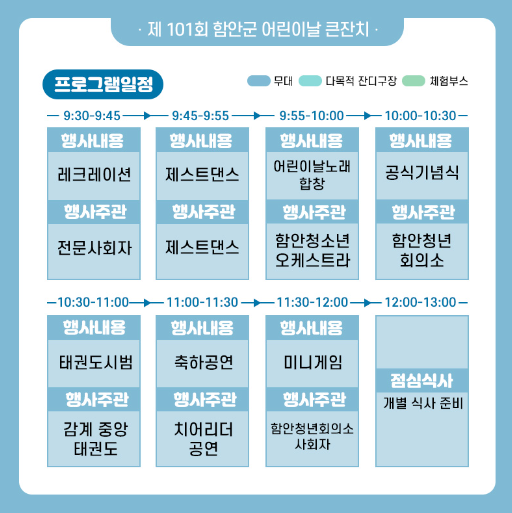 1. - 주요내용: 어린이날 기념식, 유공자 표창, 공연, 체험부스 등