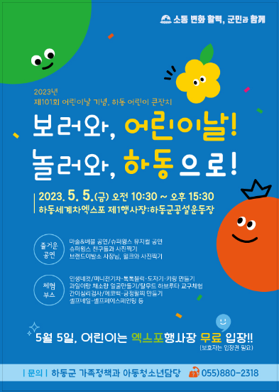2023년 5월 5일은 어린이들이 가장 기다리는 날이 아닐까요. 부모님들은 어디를 가야 즐겁게 아이들과 보낼지 고민하게 되는 날입니다. 경상남도에서 어린이날 행사에 대해 요약 정리를 해놓았습니다.