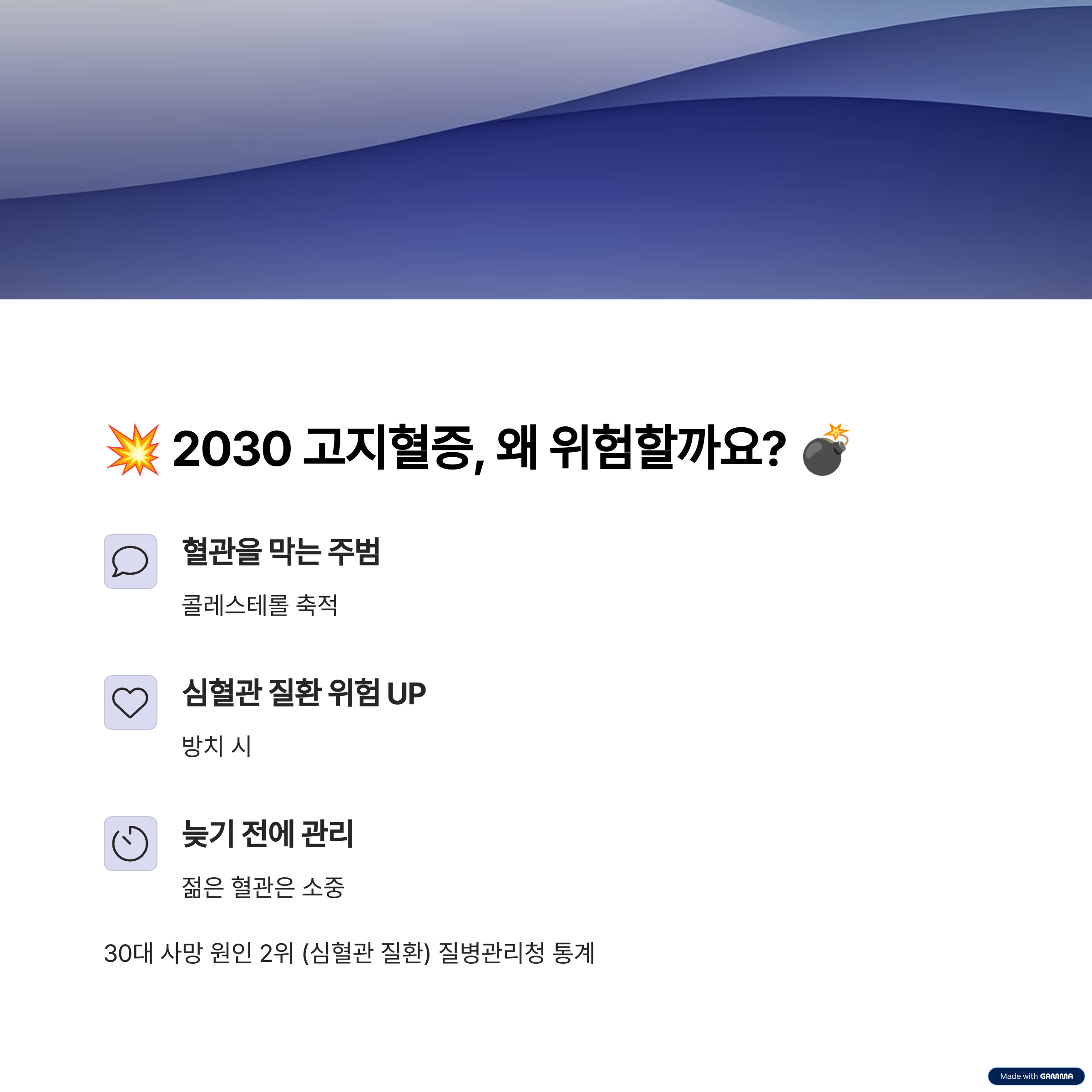 2030의 혈관은 더 이상 건강할 것이라 믿기 어려운 시대입니다.