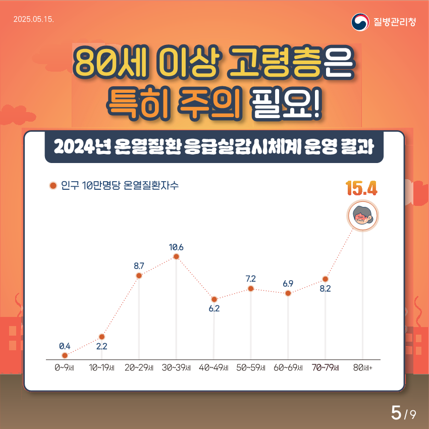 📌 80세 이상 고령층은 인구 10만 명당 15.4명 발생으로 가장 높았습니다.