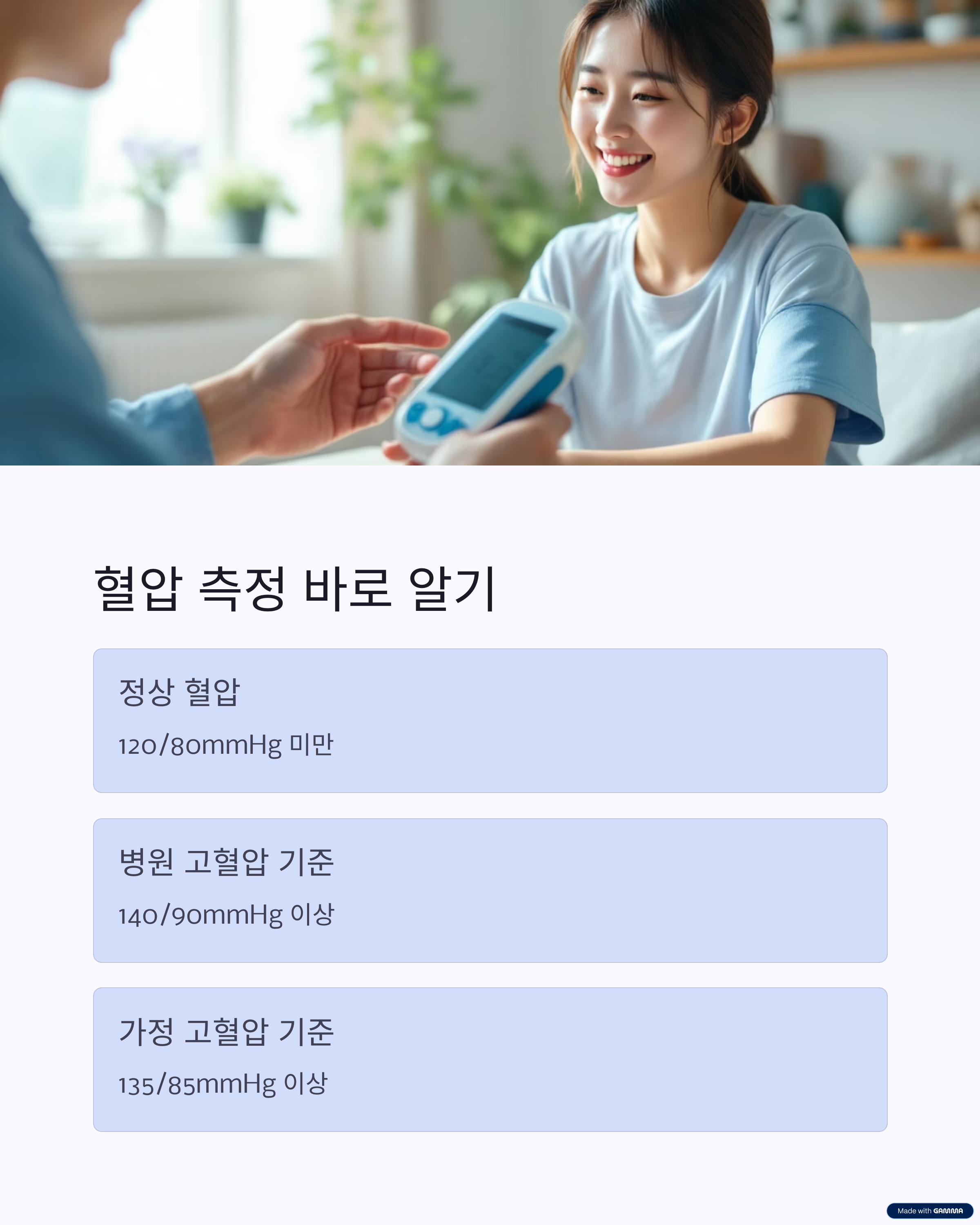 고혈압은 증상이 없다고 방심해서는 안 됩니다. 조용히, 그러나 꾸준히 우리 몸을 해치기 때문이죠. 정기적으로 혈압을 측정하고, 생활습관을 점검해보세요. 작은 변화들이 모이면 혈압은 확실히 달라집니다.